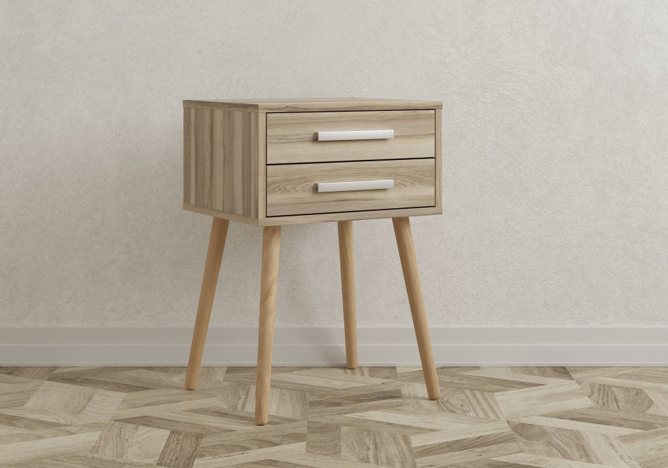 Прикроватная тумба Helen 2 на высоких деревянных опорах, с двумя выдвижными ящиками для хранения органично впишется в интерьер в скандинавском стиле. Минималистичный дизайн и отсутствие декора делает тумбу универсальной для спальни и гостиной. Материал исполнения корпуса тумб – ЛДСП. Надежные шариковые направляющие без доводчика. Материал опор – натуральное дерево. Благодаря высоте опор тумба смотрится легко и лаконично. Просвет от пола способствует легкой уборке, в том числе роботом – пылесосом.